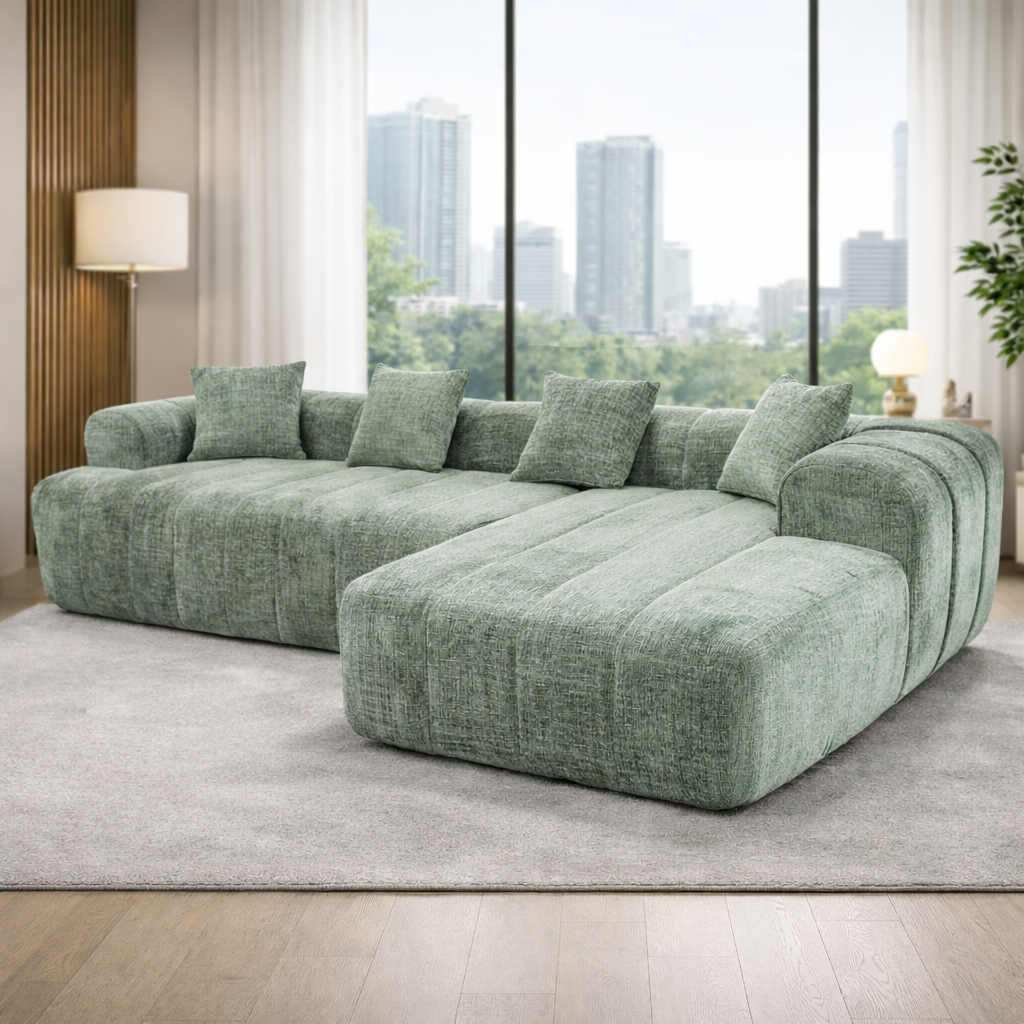 - Chenille corduro combine douceur, texture et durabilité pour un usage quotidien