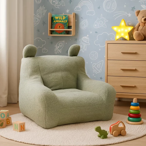 Le LAYANAH est un adorable fauteuil 1 place conçu spécialement pour les enfants. Avec ses petites oreilles rigolotes sur le dossier, il ajoute une touche de fantaisie à leur univers tout en leur offrant un cocon rien qu’à eux.
