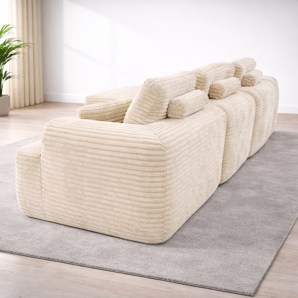 - Chenille corduro combine douceur, texture et durabilité pour un usage quotidien