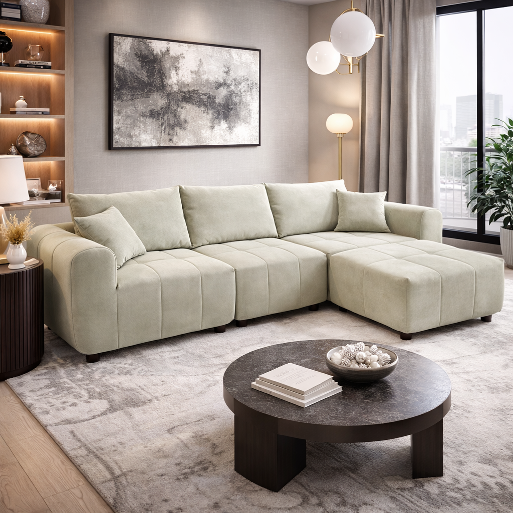 - Chenille corduro combine douceur, texture et durabilité pour un usage quotidien
