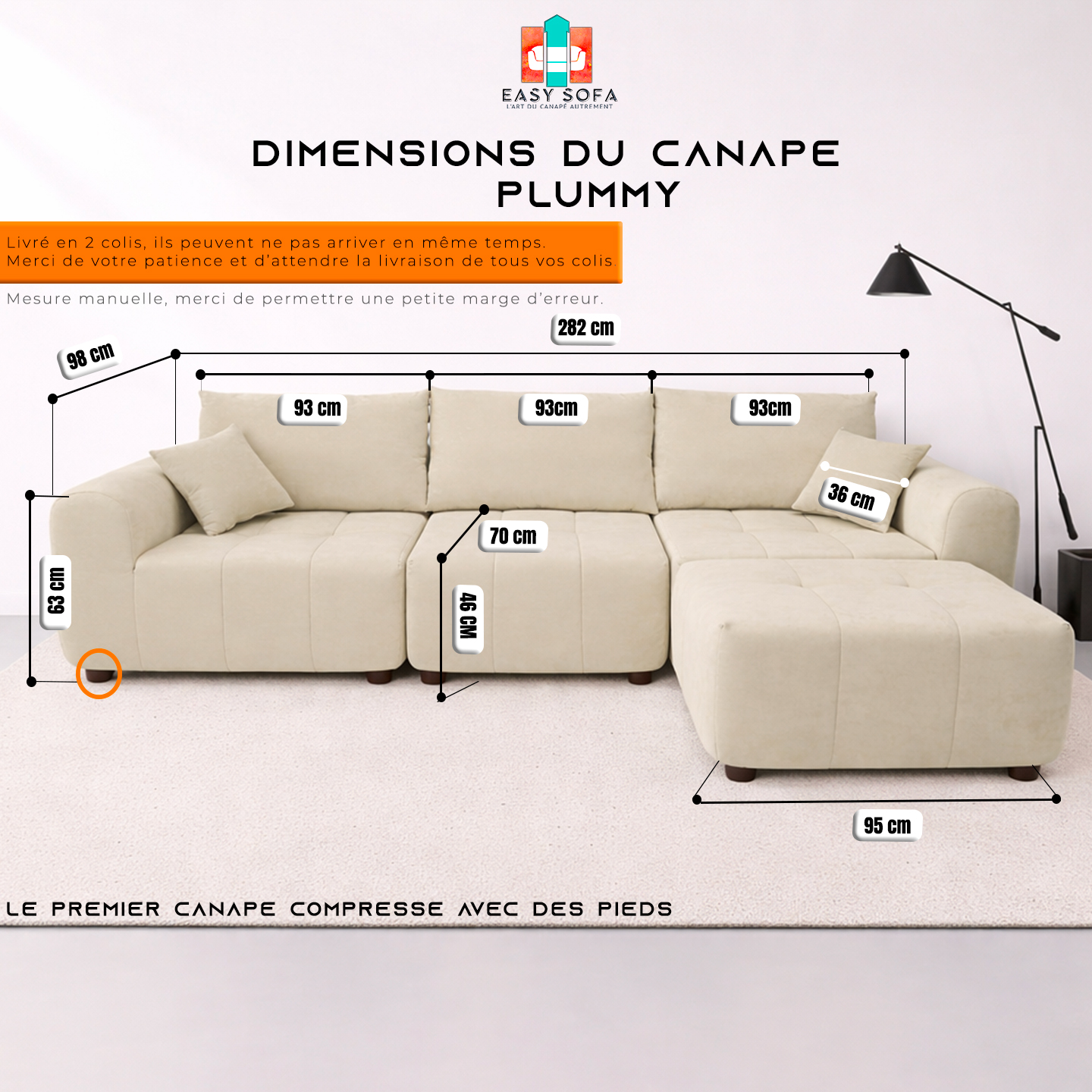 Note : Grâce à son grand ottoman modulable, PLUMMY s’adapte à votre intérieur : méridienne, repose-pieds ou assise supplémentaire.